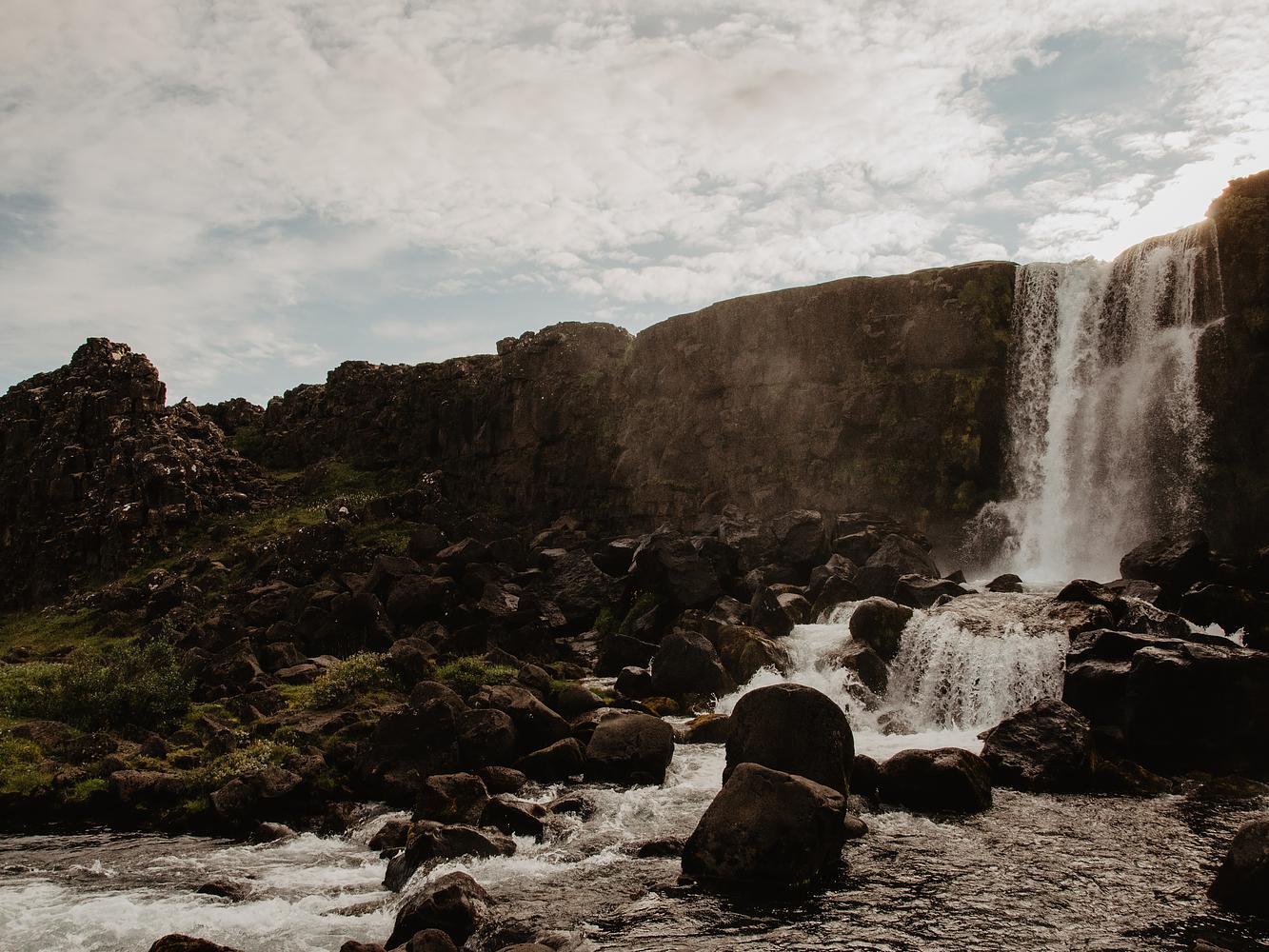 Discover the ethereal beauty of Öxarárfoss, a mesmerizing waterfall nestled in Iceland's Thingvellir National Park, where the Öxará River gracefully cascades over ancient rock formations amidst a scenic landscape of unparalleled natural splendor.